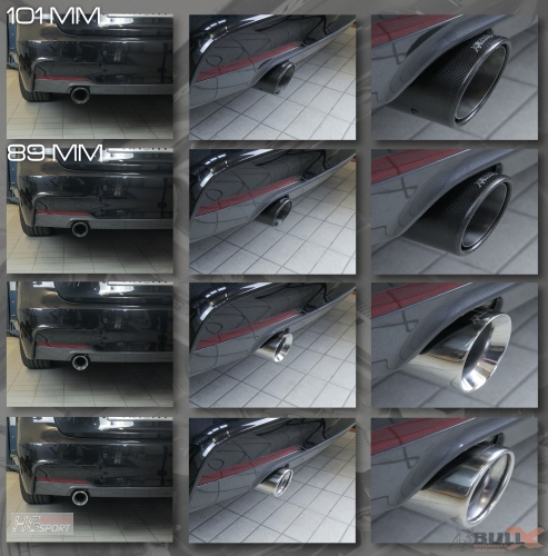 Diese EGO-X Abgasanlage für den BMW F30 335i / 340i ist handgefertigt. Der Rohrdurchmesser beträgt 3,5 Zoll (89mm). Während der Fahrt kann der Fahrer die Klappe steuern. Sofern das Fahrzeug über den Fahrerlebnissschalter (Sporttaste) verfügt ist auch eine Steuerung über die Fahrprofilauswahl möglich. Für Fahrzeuge ohne die Sporttaste kann diese Auswahl über einen mitgelieferten Taster erfolgen. Diesen Taster bekommen Sie in silber oder schwarz. Er leuchtet in den Farben: rot, grün, blau und weiß. Licht an: Klappe zu, Licht aus: Klappe offen.